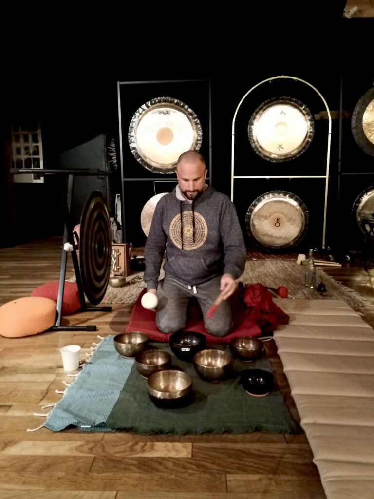 • Voyage sonore : expérience vibratoire aux sons du métal chantant (gongs, bols tibétains, handpan, tongue drum, kigonki, cloches, chaine à vent…)